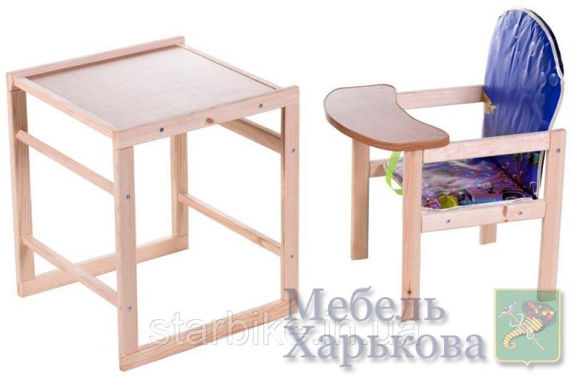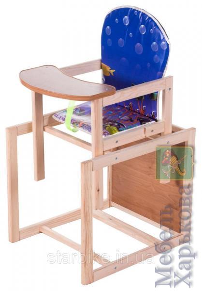 Деревянный стульчик для кормления Наталка может трансформироваться собственно из высокого стульчика для кормления с индивидуальной столешницей в стол парту для кормления, игр и занятий.К использованию стул трансформер Наталка рекомендован для детей с 6 месяцев до 6 лет.Стульчик изготовлен из натурального шлифованного дерева без покрытия.Столешница парты и стульчика – ламинированное ДСП.За чехлом легко ухаживать. Плотная, непромокаемая обивка легко протирается влажной губкой.Сиденье и спинка – мягкие.Между ножками у ребенка предусмотрен ремешок ограничитель.При использовании стула трансформера Наталка в качестве отдельного столика и стульчика маленькая столешница и ограничитель могут сниматься.Сиденье имеет мягкую высокую спинку.Расцветки в ассортименте.В комплекте инструкция по сборке.