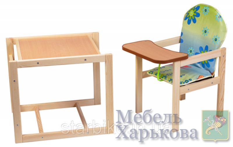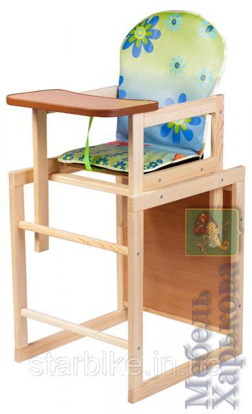 Деревянный стульчик для кормления Наталка может трансформироваться собственно из высокого стульчика для кормления с индивидуальной столешницей в стол парту для кормления, игр и занятий.К использованию стул трансформер Наталка рекомендован для детей с 6 месяцев до 6 лет.Стульчик изготовлен из натурального шлифованного дерева без покрытия.Столешница парты и стульчика – ламинированное ДСП.За чехлом легко ухаживать. Плотная, непромокаемая обивка легко протирается влажной губкой.Сиденье и спинка – мягкие.Между ножками у ребенка предусмотрен ремешок ограничитель.При использовании стула трансформера Наталка в качестве отдельного столика и стульчика маленькая столешница и ограничитель могут сниматься.Сиденье имеет мягкую высокую спинку.Расцветки в ассортименте.В комплекте инструкция по сборке.
