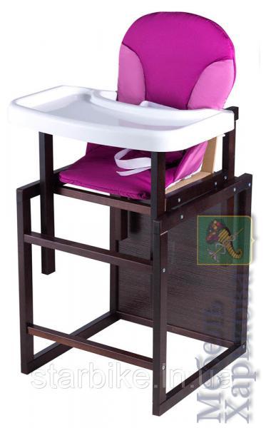 Стульчик-трансформер для кормления Babyroom Пони – это особенный стул для ваших деток, который станет отличным решением в соотношении цена/качество. Ведь при своей невысокой стоимости, стульчик обладает высоким качеством производства и материалов. Сделан стульчик из натуральной древесины, выращенной в экологически безопасных районах, которая будет точно безвредна для детского здоровья. Вскрывается дерево таким же безопасным нетоксичным водным лаком. Сиденье стульчика производится из самого качественного ДСП, а сверху покрывается чехлом из специального моющегося материала яркой расцветки. Вся конструкция стульчика продумана таким образом, чтобы быть максимально безопасной для ребенка. Деревянные элементы изделия хорошо отшлифованы, чтобы малыш не повредил нежную кожу об зазубрины или заусенцы. А в сиденье предусмотрен паховый ограничитель, который не позволит крохе случайно выскользнуть.Стул -трансформер для кормления Babyroom имеет особую конструкцию, которая позволяет пользоваться им примерно с полугода, когда кроха только научился сам сидеть и практически до возраста 5-6 лет. Для начала это будет стульчик для кормления с удобной небольшой столешницей, прикрученной перед малышом на удобном для него расстоянии. В таком комфортном стульчике, кроха не только будет кушать, но и заниматься своими любимыми делами: рисовать, играться игрушками и т.д. Высота стульчика позволяет его подставлять к обеденному столу стандартной высоты. Когда малыш подрастет, вы можете трансформировать стул для кормления в интересный детский стол-парту с небольшим стульчиком. Такой столик не раз пригодится крохе в его детских забавах и конечно при обучении новым наукам. Благодаря простой конструкции стульчика, вы сможете его легко собрать при покупке и также легко трансформировать со временем. Инструкция по сборке прилагается в комплекте.