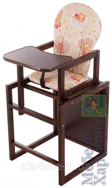 Стульчик для кормления Babyroom Трансформер – это особенный стул для ваших деток, который станет отличным решением в соотношении цена/качество. Ведь при своей невысокой стоимости, стульчик обладает высоким качеством производства и материалов. Сделан стульчик из натуральной древесины, выращенной в экологически безопасных районах, которая будет точно безвредна для детского здоровья. Вскрывается дерево таким же безопасным нетоксичным водным лаком. Сиденье стульчика производится из самого качественного ДСП, а сверху покрывается чехлом из специального моющегося материала яркой расцветки. Вся конструкция стульчика продумана таким образом, чтобы быть максимально безопасной для ребенка. Деревянные элементы изделия хорошо отшлифованы, чтобы малыш не повредил нежную кожу об зазубрины или заусенцы. А в сиденье предусмотрен паховый ограничитель, который не позволит крохе случайно выскользнуть.Стул -трансформер для кормления Babyroom имеет особую конструкцию, которая позволяет пользоваться им примерно с полугода, когда кроха только научился сам сидеть и практически до возраста 5-6 лет. Для начала это будет стульчик для кормления с удобной небольшой столешницей, прикрученной перед малышом на удобном для него расстоянии. В таком комфортном стульчике, кроха не только будет кушать, но и заниматься своими любимыми делами: рисовать, играться игрушками и т.д. Высота стульчика позволяет его подставлять к обеденному столу стандартной высоты. Когда малыш подрастет, вы можете трансформировать стул для кормления в интересный детский стол-парту с небольшим стульчиком. Такой столик не раз пригодится крохе в его детских забавах и конечно при обучении новым наукам. Благодаря простой конструкции стульчика, вы сможете его легко собрать при покупке и также легко трансформировать со временем. Инструкция по сборке прилагается в комплекте.
