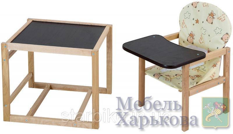 Стульчик для кормления Babyroom Трансформер – это особенный стул для ваших деток, который станет отличным решением в соотношении цена/качество. Ведь при своей невысокой стоимости, стульчик обладает высоким качеством производства и материалов. Сделан стульчик из натуральной древесины, выращенной в экологически безопасных районах, которая будет точно безвредна для детского здоровья. Вскрывается дерево таким же безопасным нетоксичным водным лаком. Сиденье стульчика производится из самого качественного ДСП, а сверху покрывается чехлом из специального моющегося материала яркой расцветки. Вся конструкция стульчика продумана таким образом, чтобы быть максимально безопасной для ребенка. Деревянные элементы изделия хорошо отшлифованы, чтобы малыш не повредил нежную кожу об зазубрины или заусенцы. А в сиденье предусмотрен паховый ограничитель, который не позволит крохе случайно выскользнуть.Стул -трансформер для кормления Babyroom имеет особую конструкцию, которая позволяет пользоваться им примерно с полугода, когда кроха только научился сам сидеть и практически до возраста 5-6 лет. Для начала это будет стульчик для кормления с удобной небольшой столешницей, прикрученной перед малышом на удобном для него расстоянии. В таком комфортном стульчике, кроха не только будет кушать, но и заниматься своими любимыми делами: рисовать, играться игрушками и т.д. Высота стульчика позволяет его подставлять к обеденному столу стандартной высоты. Когда малыш подрастет, вы можете трансформировать стул для кормления в интересный детский стол-парту с небольшим стульчиком. Такой столик не раз пригодится крохе в его детских забавах и конечно при обучении новым наукам. Благодаря простой конструкции стульчика, вы сможете его легко собрать при покупке и также легко трансформировать со временем. Инструкция по сборке прилагается в комплекте.